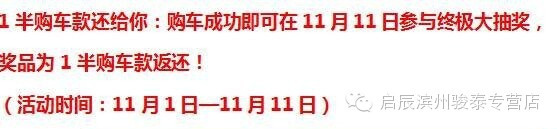 ②11月11日前交车客户,就有机会获得启辰R30低价【1万】购买权、启辰车半价退款权或1万元车辆退款!